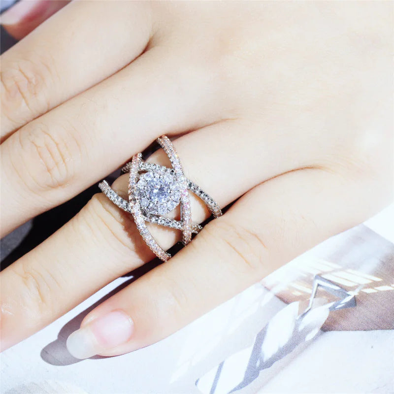 Rhinestone Round Earrings & Ring Set